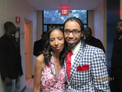 Dove/Stellar Award nominated singer Bryan Wilson congratulates entrepreneur Veda Brown at the 10th anniversary celebration concert for her BlackGospelPromo.com e-blast and marketing service at the Impacting Your World Christian Church in Cherry Hill, NJ, on July 25, 2011. Wilson has performed alongside other gospel heavyweights such as Vickie Winans, Kurt Carr and Lonnie Hunter & Structure.