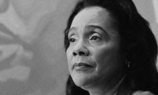 “Song for Coretta” is based on event of Feb. 6, 2006, when people began lining up at dawn outside of Atlanta’s Ebenezer Baptist Church to pay their respects to the late Mrs. Coretta Scott King, widow of Dr. Martin Luther King, Jr., whose body lay in state in the small sanctuary. By mid-morning, the crowd wound down the street and around the corner of the old red brick building. People of all ages stood patiently for hours, waiting to say goodbye. Sometimes they murmured to each other quietly. Sometimes they shared memories of Mrs. King’s extraordinary life and expressed sorrow at her passing. When a cold rain began to fall at sunset, those who had thought to bring umbrellas shared them with those whose resolve was the only thing not dampened by the drizzle. At close to midnight, the crowd had dwindled to a determined few. The five fictional characters in this play are at the end of that long line of mourners.
