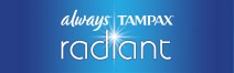 Get invisible protection with the all-new Radiant collection from Tampax® & Always®. It features tampons with re-sealable wrappers that help keep things under wraps and absorbent & flexible pads with Infinicel™ for outstanding protection that won’t compromise your personal style. Learn more at: Always.com or Tampax.com. To obtain a free sample, go to Vocalpoint.com/BeTheFirst/Radiant.